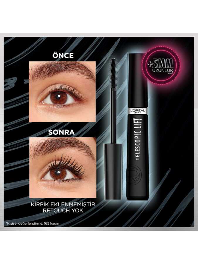 ماسكارا تلسكوبية لرفع الرموش من لوريال باريس خصائص المنتج اللون أسود مقاوم للماء والعرق لا الحجم كبير التأثير تكثيف، إطالة، إطالة