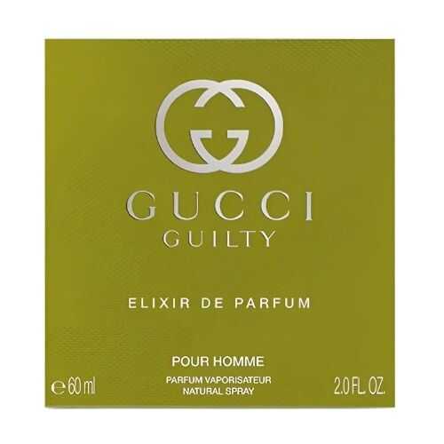 Gucci Guilty Elixir de Parfum Pour Homme is an amber and leathery fragrance that contains the precious Patchouli, Gucci Guilty's signature ingredient, in a more concentrated form. The original essence is strengthened with Vanilla Essence, while the addition of Iris oil gives it a warm and enveloping aroma. The exciting Ambrofix, which enhances its unique nature, is completed with a nutmeg note, bringing the fragrance to its peak. Benzoin, found in the base note, adds depth and charm to the fragrance.Product featuresPerfume TypeEDPPerfume Milliliter60 mlFragrance TypeAromatic