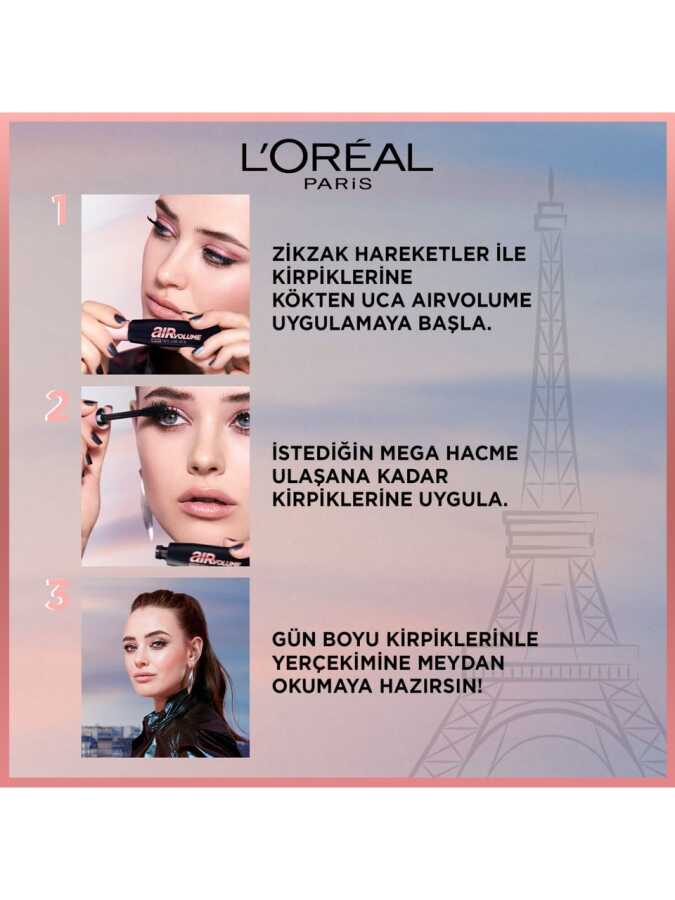 NEW! Gravity-defying lashes have never been so black! L'Oréal Paris's new Air Volume Mega Black Mascara: Light as air, mega-volume lashes are now jet black and last all day long!Long-lastingLong-lasting for up to 30 hours*Mega Black: Jet Black LashesMega Volume: Buildable volume effect with a weightless formulaTransfer-resistantHypoallergenic formula*Consumer testProduct featuresColorUltra BlackWater & Sweat ResistantNoSizeLargeEffectVolumizing
