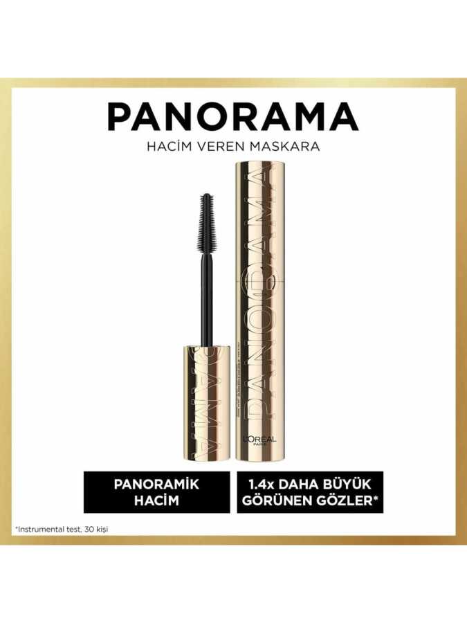 L'oréal Paris's New Panorama Mascara Makes Your Eyes Look 1.4 Times Bigger!Meet the New Panorama Mascara That Grasps All Lashes from End to End and Provides Panoramic Volume! Thanks to its Special Brush, it separates the lashes, gives volume and makes your eyes look 1.4 times bigger. Thanks to its Anti-Clumping Formula, it does not cause weight or smudge, Suitable for Sensitive Eyes.Panoramic Volume Separated and Long-Looking Lashes Do Not Feel Weighty Does Not Clump Does Not Smudge Suitable for Sensitive Eyes.Instrumental Test, 30 Women-1.4 Times Bigger Looking Eyes*-Panoramic Volume-Long and Separated Hedgehog Look-Flexible Brush*Instrumental Test, 30 WomenProduct FeaturesEffectVolumizingWater & Sweat ResistantNoSizeLarge Size